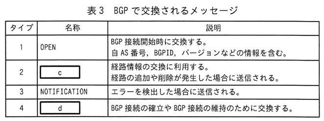 BGPで交換されるメッセージは4タイプあり、表3に示す。